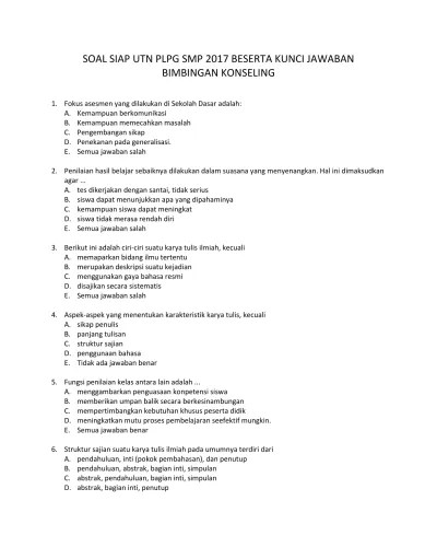 Pada postingan kami sebelumnya, kami juga telah berbagi soal ujian ut pgpaud semester 7 yaitu soal ujian ut pgpaud paud4402 keterampilan musik dan tari yang juga dapat anda pelajari. Program bk smp kelas vii viii ix tahun pelajaran 2020 2021 rpl bk 1 lembar untuk smp kelas 7 8 9 soal pedagogik guru sd untuk seleksi pppk kunci jawaban. Pada postingan kami sebelumnya, kami juga telah berbagi soal ujian ut pgpaud semester 7 yaitu soal ujian ut pgpaud paud4402 keterampilan musik dan tari yang juga dapat anda pelajari. Soal revisi sd smp sma. Seleksi pppk sama halnya seperti pelaksanaan tes cpns pada umumnya yang didalamnya terdapat standar kompetensi yang harus. Soal ukg smp bahasa indonesia dan kunci jawaban 2. Atau cek fb kami disini. 20141105 uts pengantar pendidikan 1. Soal matematika kelas 4 tentunya dengan soal matematika kelas 4 yang kami sampikan ini akan bisa membuat anda bisa mengerti dan memahami soal matematika kelas 4 yang kami sampikan untuk anda semua. Soal dan jawaban uts psikologi pendidikan. Soal bimbingan konseling smp kelas 8. Soal ujian ut pgpaud paud4406 bimbingan konseling untuk anak usia dini disertai kunci jawaban konseling kunci anak. Download contoh soal tes p3k/pppk guru bimbingan dan konseling dan kunci jawaban.